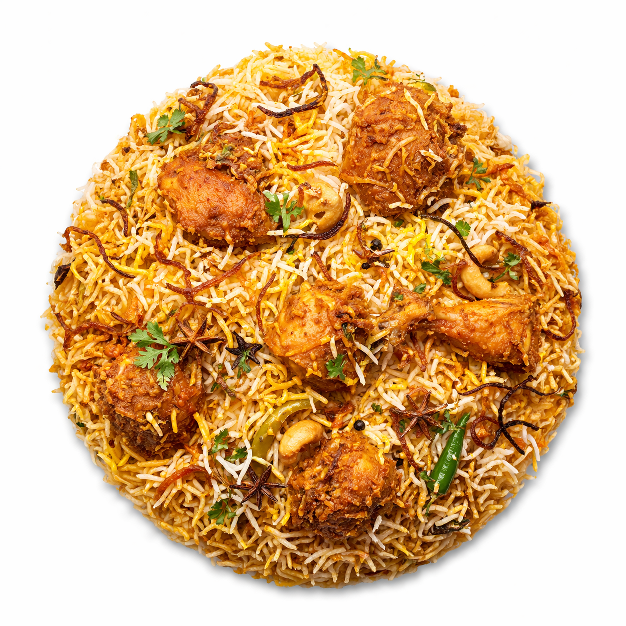 Authentic dum-cooked chicken biryani with rich spices and saffron rice.