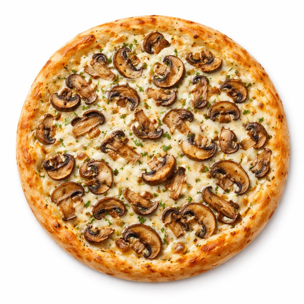 A luxurious combination of earthy mushrooms, creamy mozzarella, and aromatic truffle oil layered over a perfectly baked crust. Crafted for a gourmet experience with every bite.